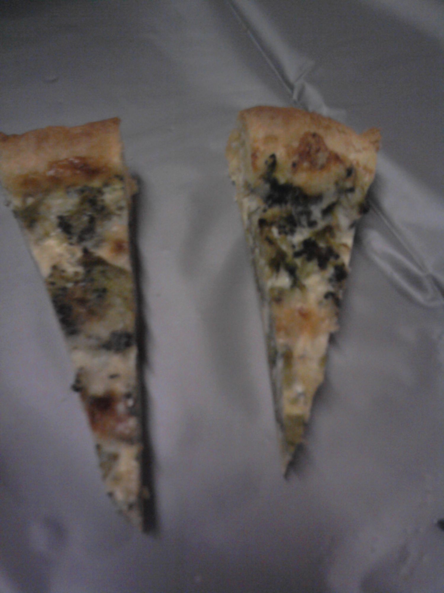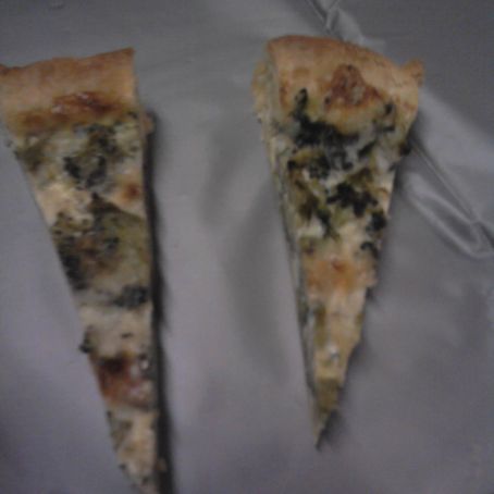 Spread the dough in a pie plate. Prick the bottom with a fork. Beat eggs with sour cream and cream cheese. Add crumbled blue cheese and basil, salt and pepper. Place the broccoli evenly in pie shell, pour the mixture over. Sprinkle with gruyere cheese and bake 30 minutes.