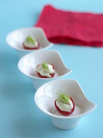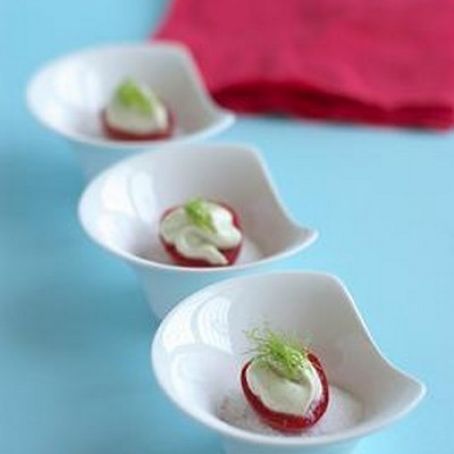 Cherry tomatoes stuffed with Robiola Cheese, Anchovies and Fennel