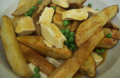 In each plate, I divided the marinated tofu, golden fries, green peas (if using), followed by a ladle of sauce poutine.