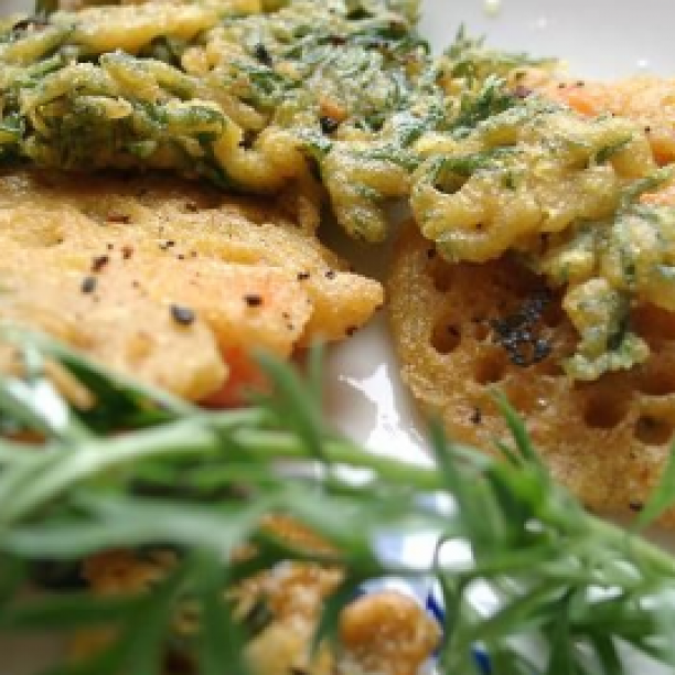 Cooking: Heat a pan an inch of olive oil. When it is hot, dip the battered vegetables. Remove from frying and drain, serve hot.