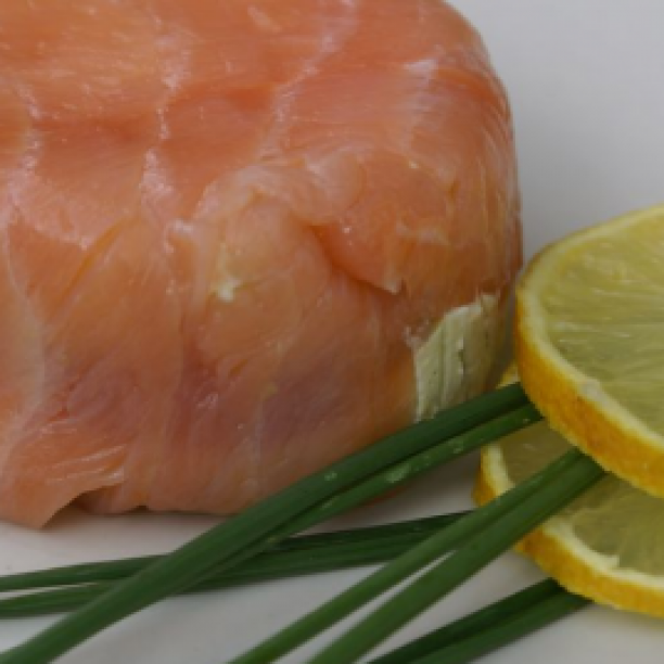Covering the inside of 4 ramekins with plastic wrap to facilitate easy release of salmon. Place salmon so that it covers the bottom and sides. Fill the salmon
