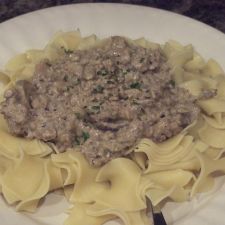 Cook the ground steak. At the end of cooking, add the cheese to the pan. Melt the camembert over burger.
