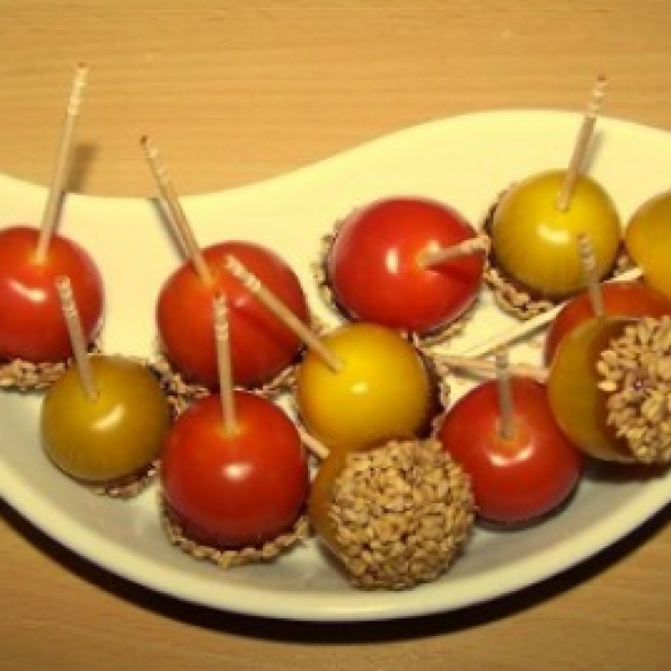 Cherry tomatoes and caramelized sesame seeds