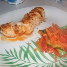 - Layer cheddar, blue, and mozarella cheese inside the bread