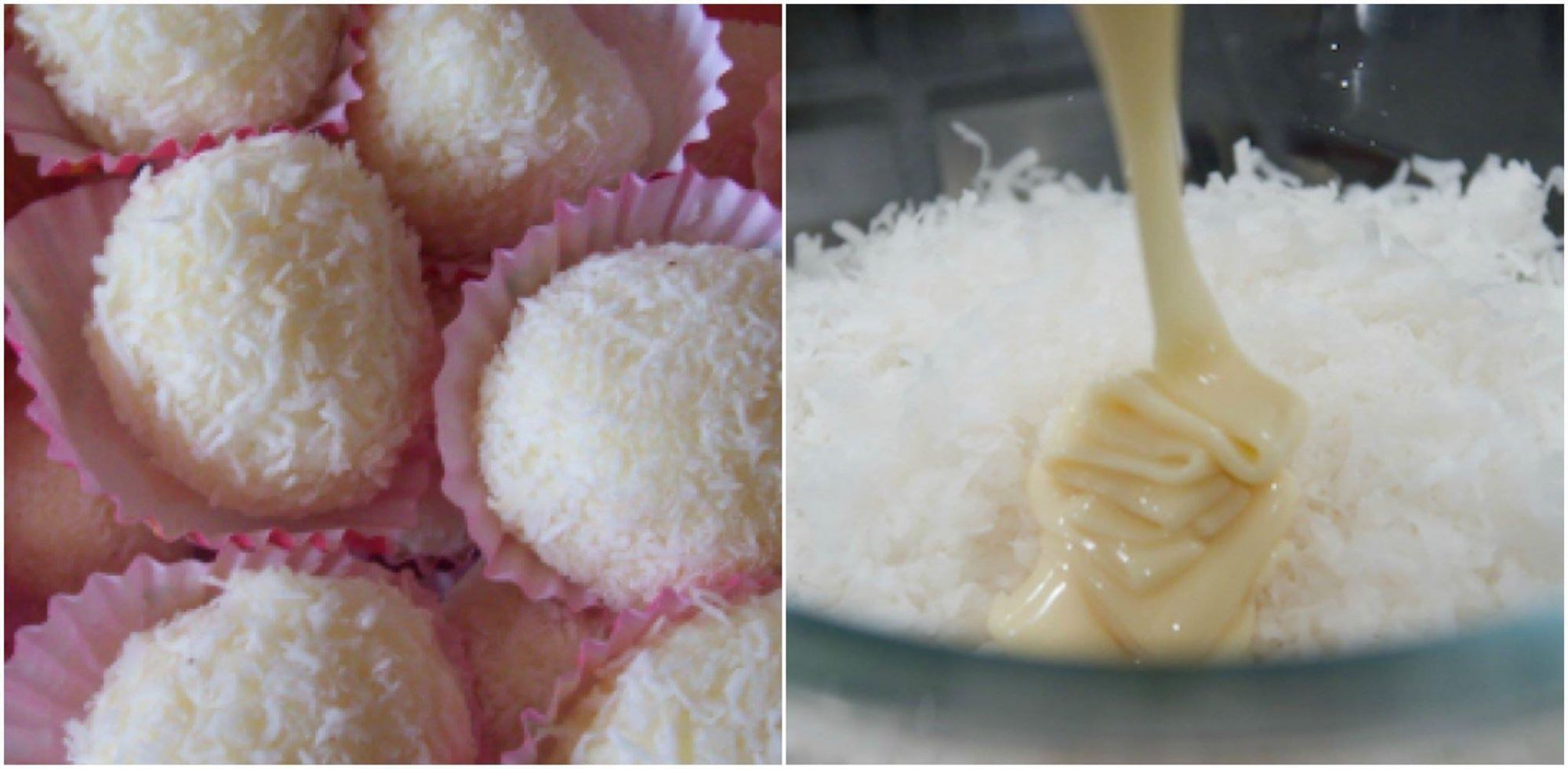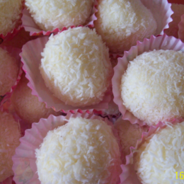 Form into balls about the size of a walnut, place them on the plate of reserved coconut and coat.
