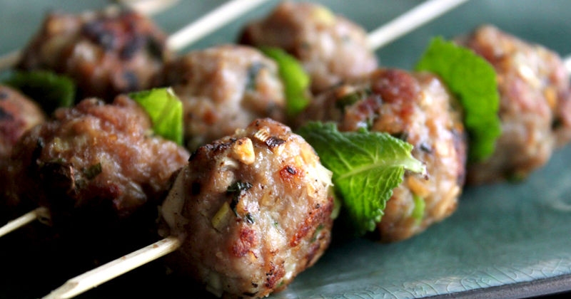 Nem nuong: Vietnamese Pork Meatballs with Mint