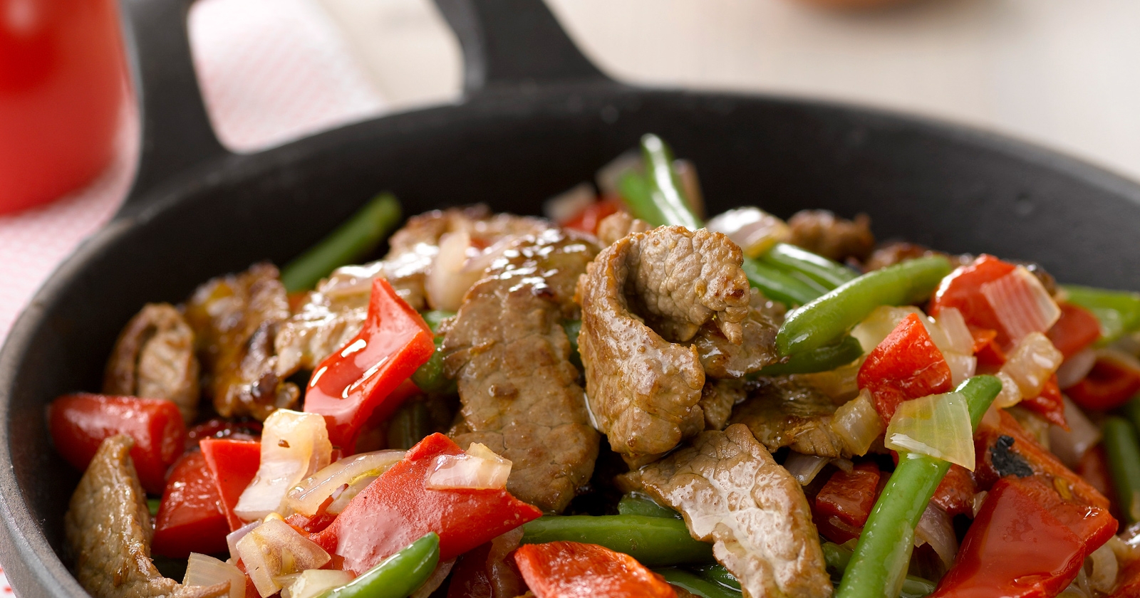 When the vegetables are cooked, add the meat. Sauté for 1 minute, then add the noodles. Add hot water and stir for 1 minute.