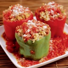 Place each stuffed pepper on fried potatoes and sprinkle the remaining chopped olives pepper.