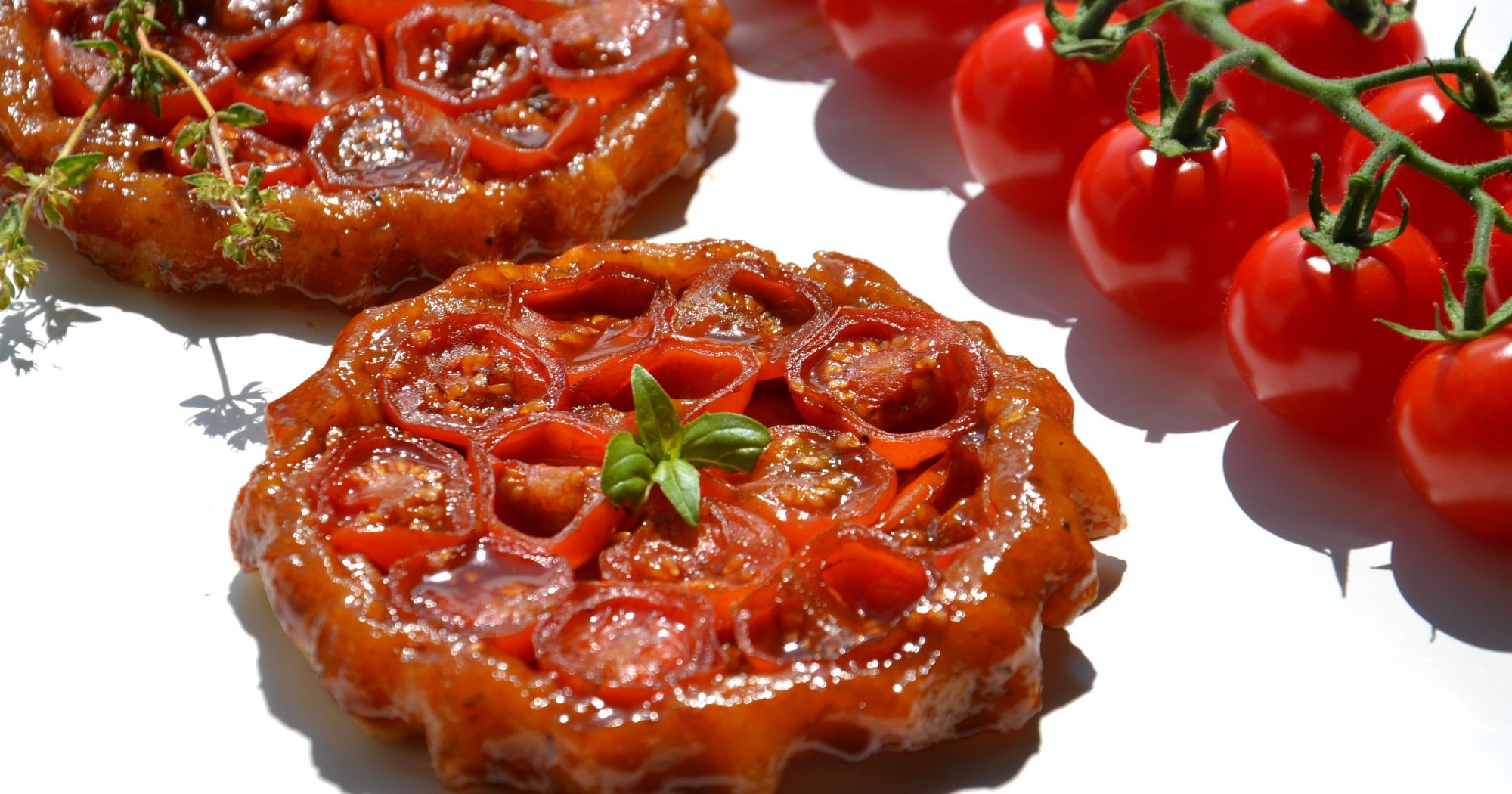 Fry the tomatoes cut in two and seed. On the inside add some olive oil. Salt and pepper.