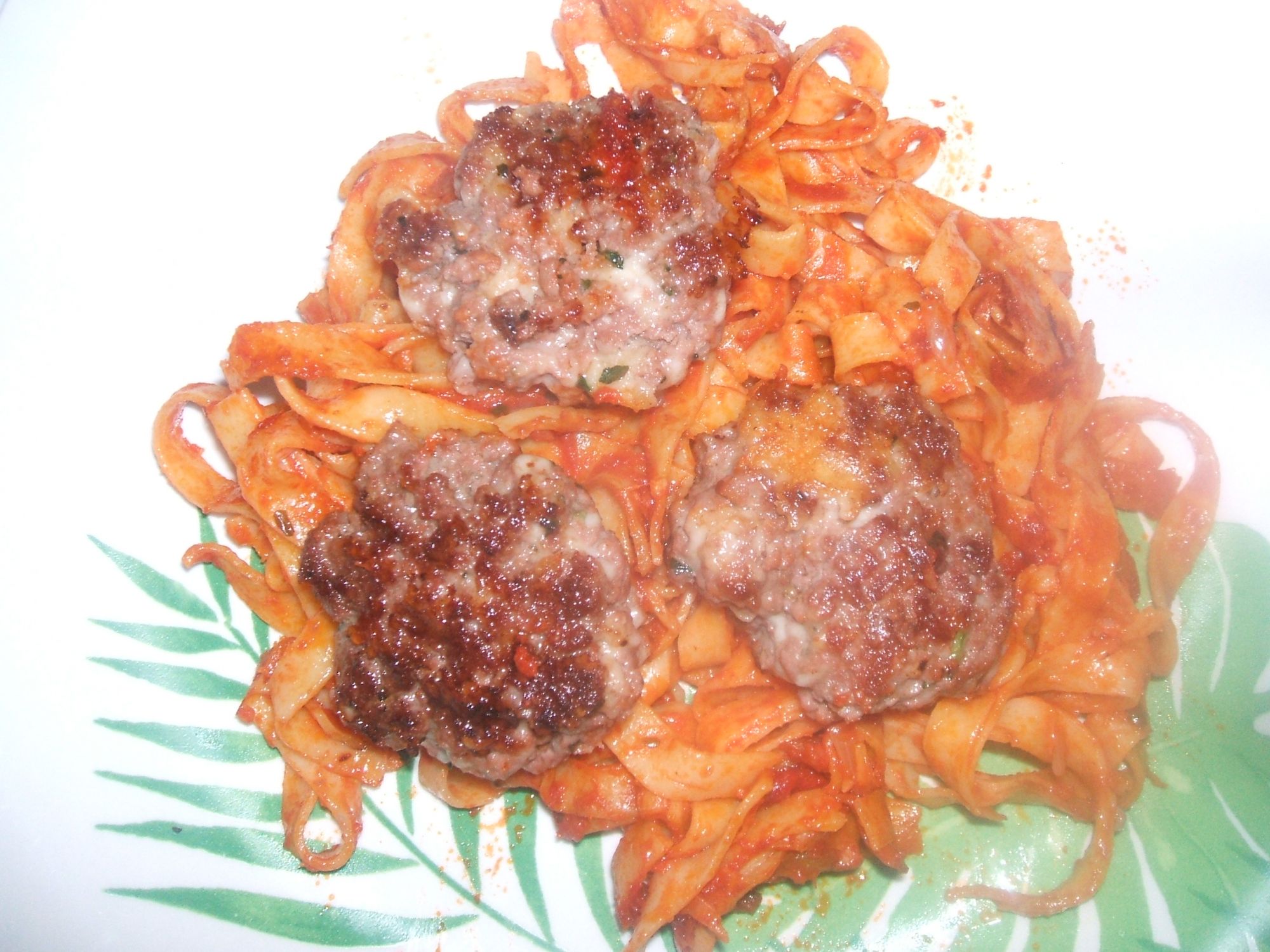 Form the meatballs. Add olive oil to a pan and cook meatballs for about 5 minutes.