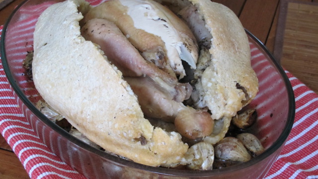 Chicken in Salt Crust with Garlic Confit