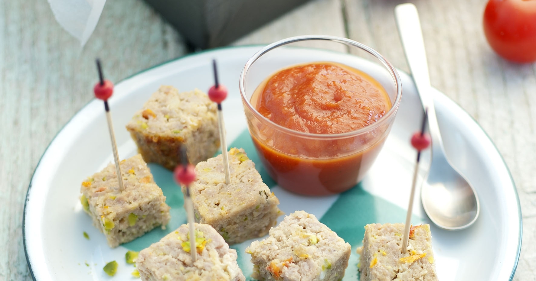 Veal meatloaf with tomato confit and pistachios. Discover our recipe.