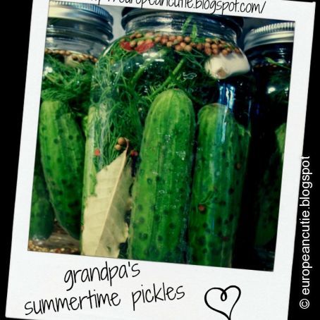Here is my grandpa's recipe for summertime pickles he always used to make after my grandparents would get back from the "Bazaar" as they called it (Farmer's Market) with a ton of fresh garlic, dill stalks and of course small cucumbers!