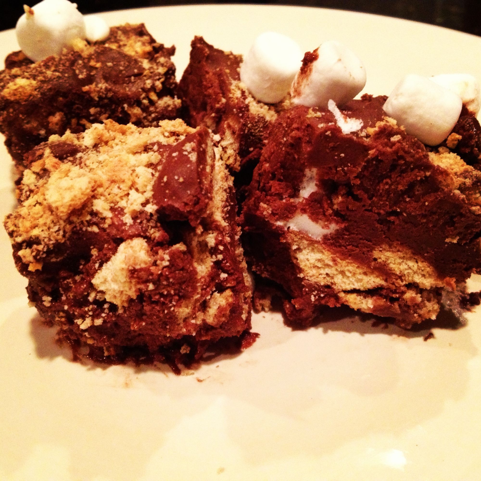 Garnish the fudge with graham crackers and marshmallows. Chill overnight in the refrigerator or freezer for two hours. Slice and enjoy!