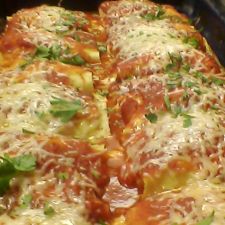 Place mixture in casserole pan and top with remaining sharp cheddar. Cover and freeze up to six months, cover and refrigerate up to two days, or bake immediately: 350 degrees for 45 minutes until bubbly. (If the cheese on top starts to get too cooked, cover with foil).
