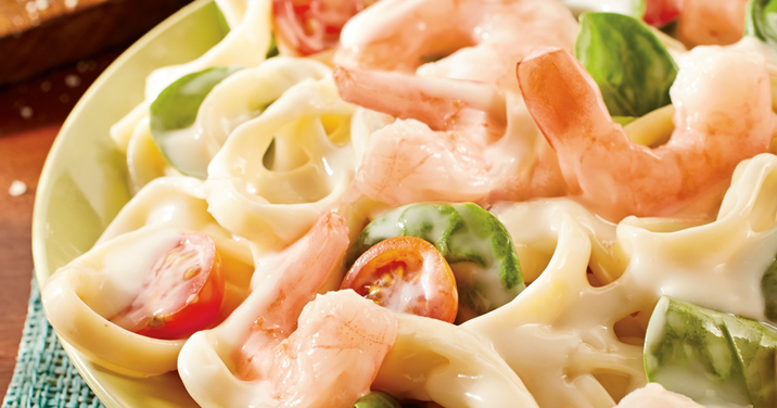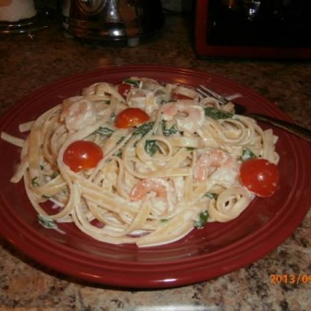 In another pot heat up your butter, whipping cream, parmesan, and garlic powder. Once it is well heated add you shrimp, spinach, and tomatoes. Blend in the sauce unil fully cooked .