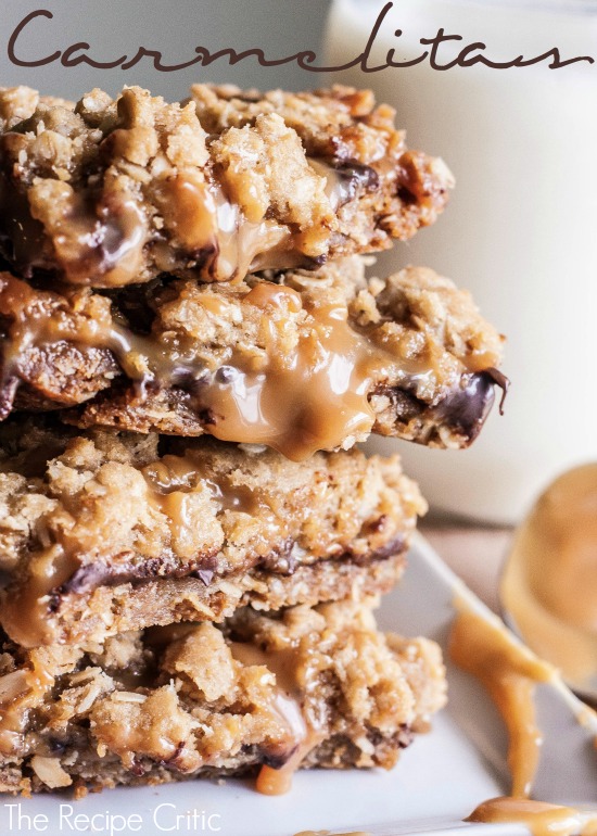 Preheat oven to 350. Grease an 8×8 pan or you can line with aluminum foil or parchment paper for easier removal. The carmel can get sticky. (can also be made in a 9×13 just double the ingredients)