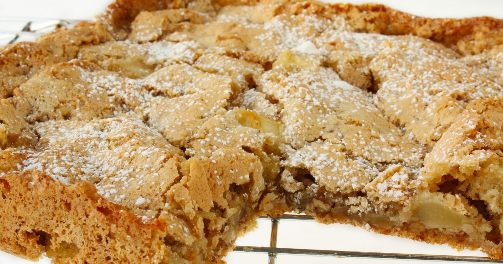 Sprinkle with powdered sugar (if desired), slice into squares and serve.