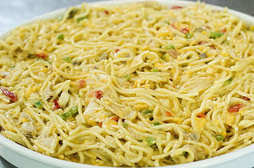 Drain Pasta, Mix in Velveeta,Rotel and Chicken