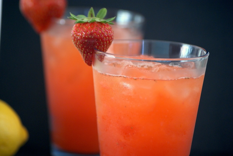 In the blender put 5-6 strawberries and 1 teaspoon of sugar. Blend
