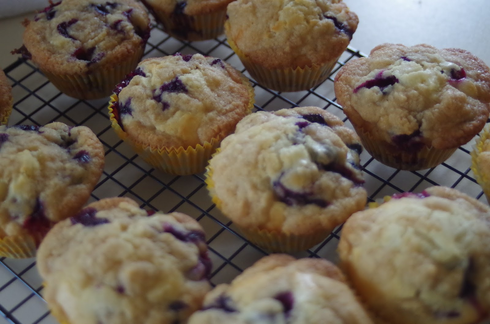 Every year our blueberry bushes produce lots of delicious berries. But I don't have many recipes to use them in. Then I saw a recipe for blueberry muffins, and I have to say: they rock! I love these and they taste so good with homegrown blueberries!
