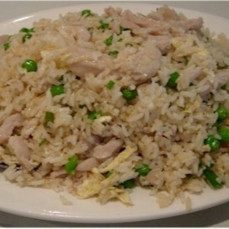 In a medium bowl, toss chicken strips with the sesame oil and season with salt and pepper, to taste. Heat 3 tablespoons vegetable oil over high heat in large frying pan or wok and stir-fry the prepared chicken strips until lightly golden, about 2 to 3 minutes. Add the onion and garlic and stir-fry for 1 to 2 minutes or until onion has softened. Add 2 tablespoons more vegetable oil and when hot, stir in the cooked rice and green onions, tossing and mixing thoroughly until very hot. Sprinkle with soy sauce and mix evenly. Remove from heat and stir in chopped cooked egg. If desired, garnish with additional sliced green onions.
