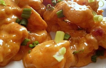 Mix mayo and sauces in a bowl and set aside. Taste if you want to and see if it hits all the right notes. Some times I add a little more of this or that. Bread your shrimp in the cornstarch and deep fry until lightly browned and drain on paper towel. Afterwards coat in the sauce and serve