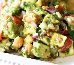 After you have diced and chopped the avocados, red onion, Roma tomatoes and cilantro, combine in a medium bowl. Add lime juice, pepper and garlic salt.