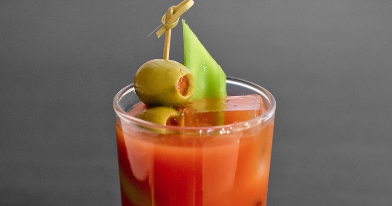 In a cocktail mixer full of ice, combine the vodka, vegetable juice, Worcestershire sauce, hot pepper sauce, salt and pepper. Shake vigorously and strain into the glass. Garnish with a stalk of celery and olives stuck onto a toothpick.