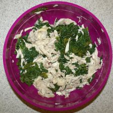 - Put shredded chicken breast, tomato sauce, chives, and mexican spice mix in a bowl and mix together.