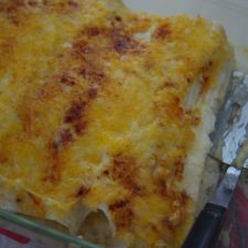 Pile chicken mixture into warm corn tortillas and roll. Line casserole or baking dish with enchiladas, seam side down. Pour hot tomato sauce over the chicken enchiladas and top with cheese. Place in enchiladas in hot oven 6 inches from broiler and broil 5 minutes to melt cheese and set enchiladas. Serve.