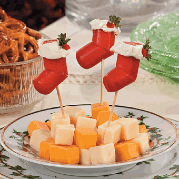 Place a sprig of parsely and a diced piece of red bell pepper on the cream cheese cuff for a festive holly garnish