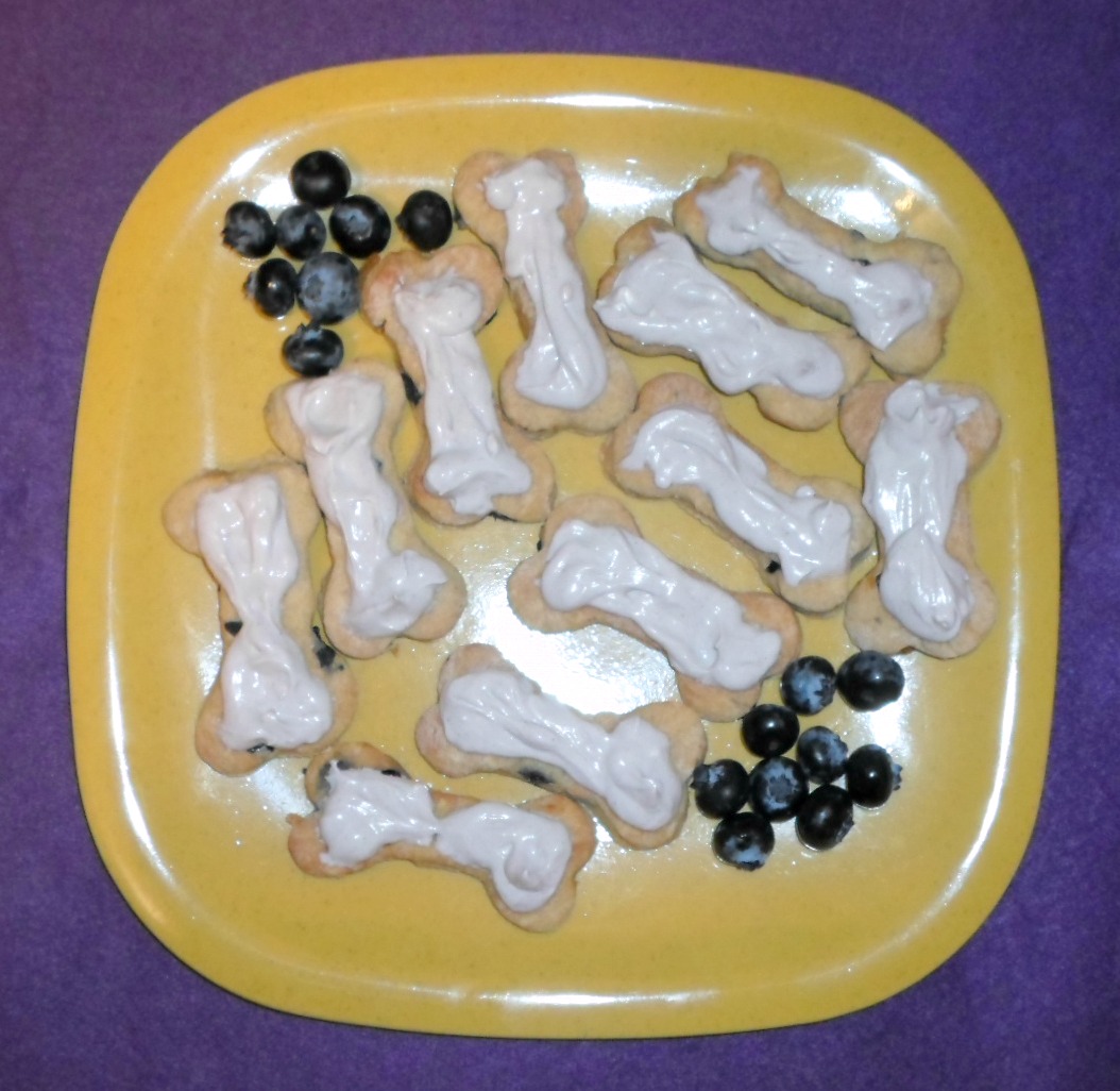 Once your biscuit cookies are done baking and have cooled for at least 10 minutes, generously glaze them with your very own homemade blueberry icing