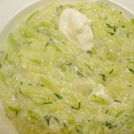 Here's a delicious Hungarian recipe for creamed zucchini with a hint of dill. It's light and refreshing, which makes it a wonderful side dish to meat.