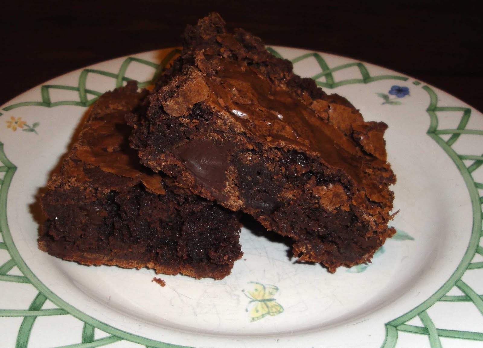 Sift the flour, cocoa powder, and salt in a bowl. Gradually stir flour mixture into the egg mixture until blended. Stir in the chocolate morsels. Spread the batter evenly into the prepared baking dish.