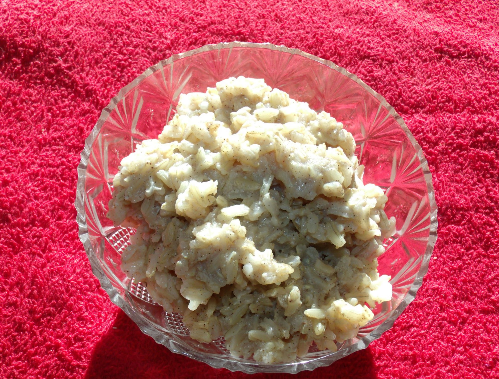 Boil 1 cup of white rice for 1 hour in milk and 1 teaspoon of cinnamon for 30 minutes or until creamy