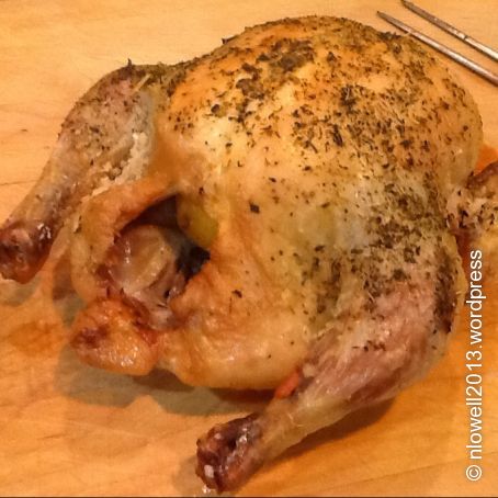 A slow roasted chicken that yields juicy, tender, silky meat, and crispy skin.