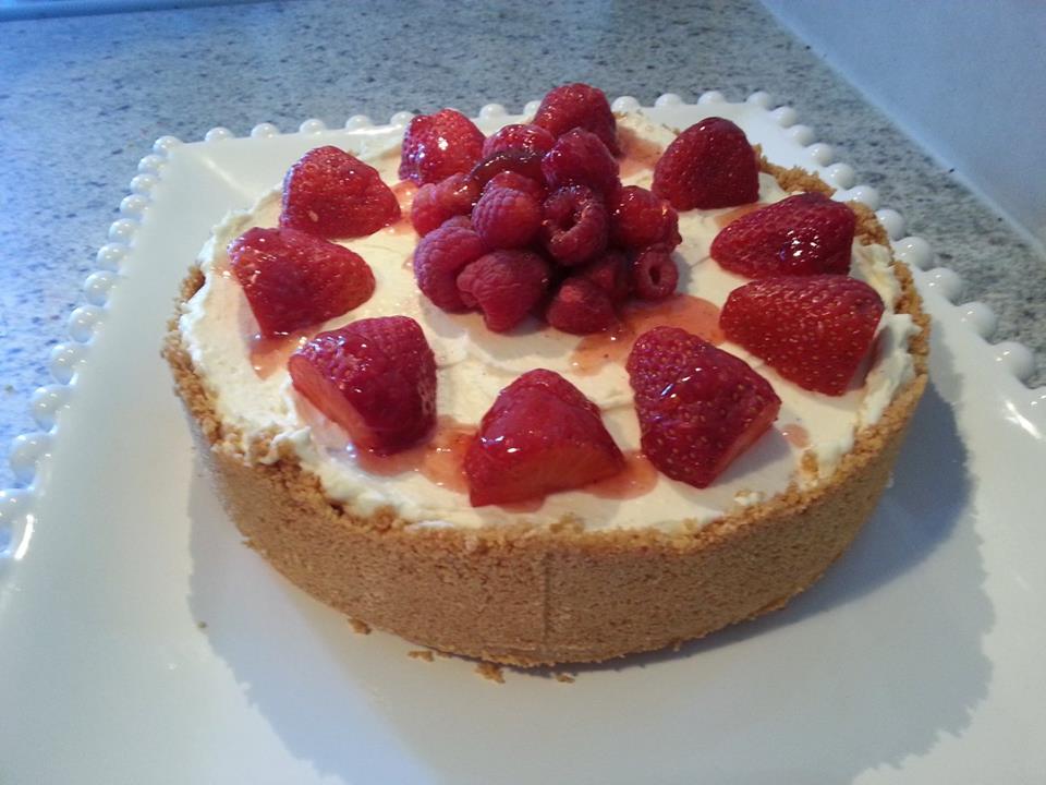 4. Once set, arrange berries on top and pour over the glaze just before serving.