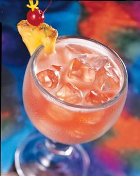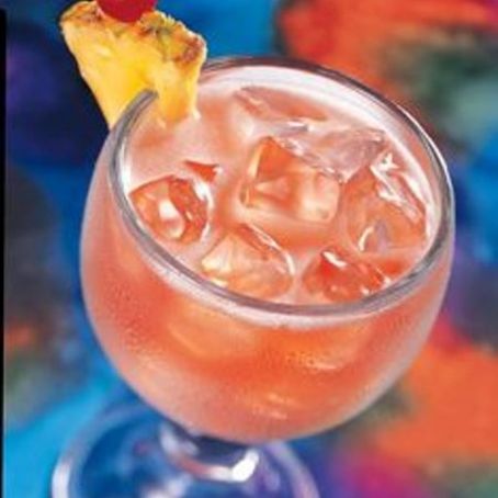 Combine coconut rum, grenadine, orange juice, pineapple juice stir and serve with ice.