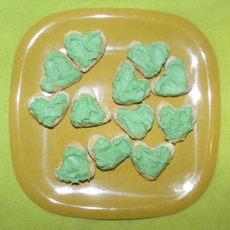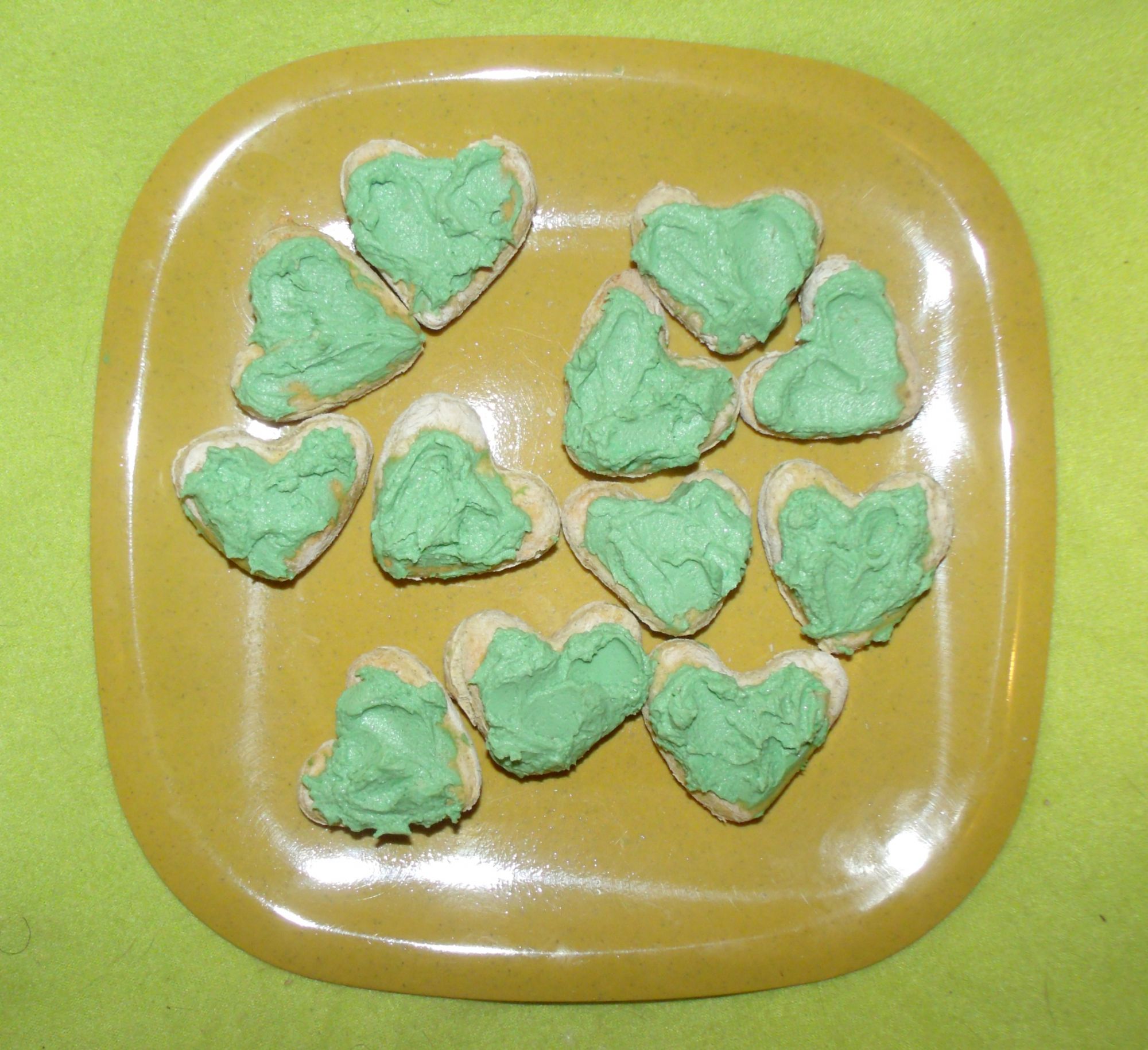 Mix 1/2 cup of plain yogurt with 2 tablespoons of peanut butter and green food coloring and then ice your divine heart beats