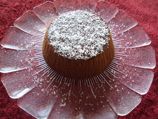 5) Preheat the oven at 350 degree and bake it for 30-35 minutes. (A toothpick inserted in the center of the cake should come out clean ) Cool it for 10 mins and decorate it using chocolate spread, coconut flakes etc.