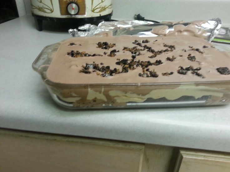 It has Chocolate fudge pudding, oreos, peanut butter cream cheese. Whats not to love?