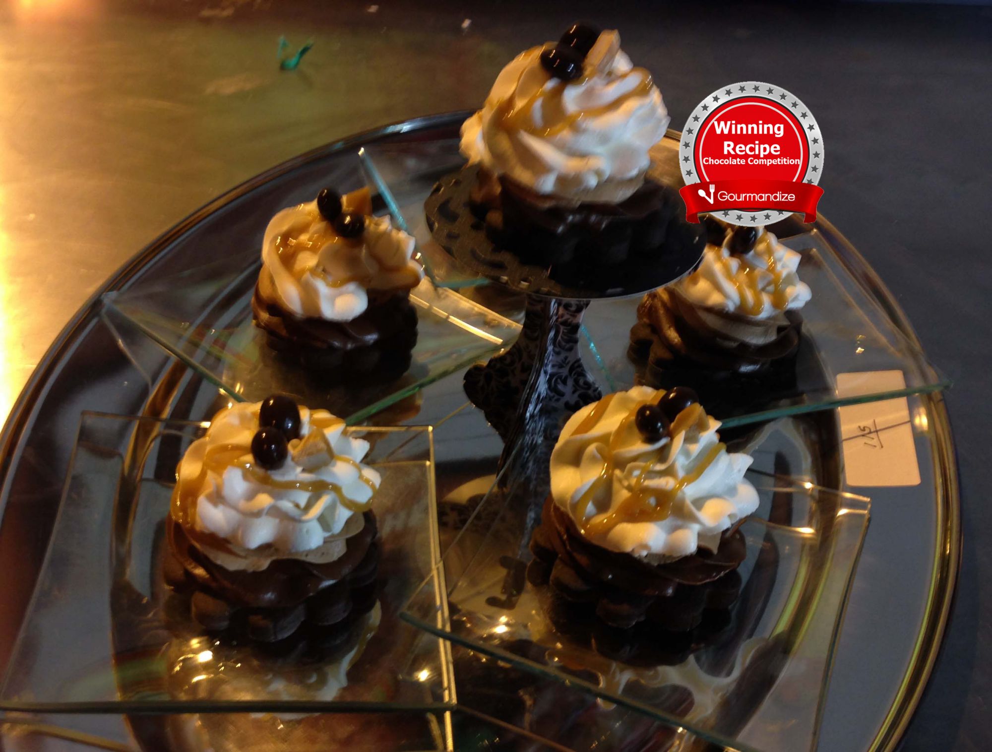 A personal size tart that combines milk chocolate, dark chocolate, caramel and espresso.