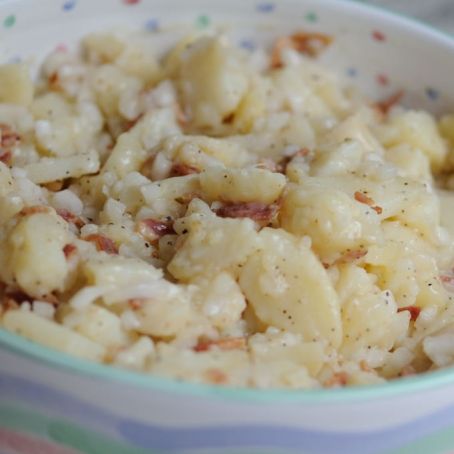 Mix all other ingredients together and then pour over potatoes and mix....serve chilled.