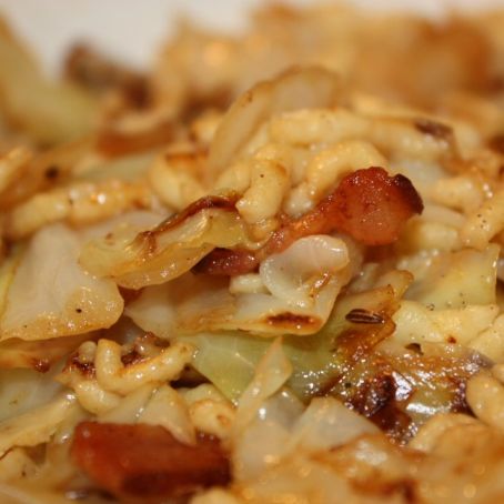 Mix Noodles and cabbage together in a large stock pot, let cook on low for a few minutes letting flavors combine and serve.