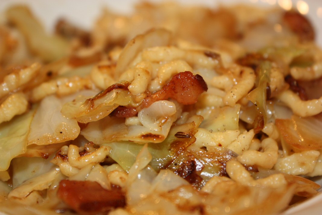 Add butter, cabbage, ham base, bacon and salt and pepper in a large skillet and cook till softens.