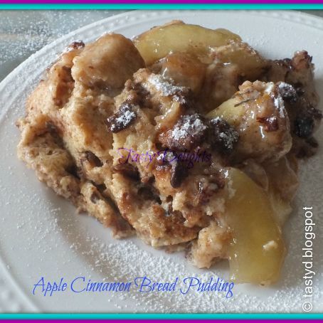 MMMmmm warm and creamy Apple Ciinnamon Bread Pudding. Comfort food at it's best, sprinkled with a chocolatey surprise. Elegant enough for a brunch or after dinner dessert.