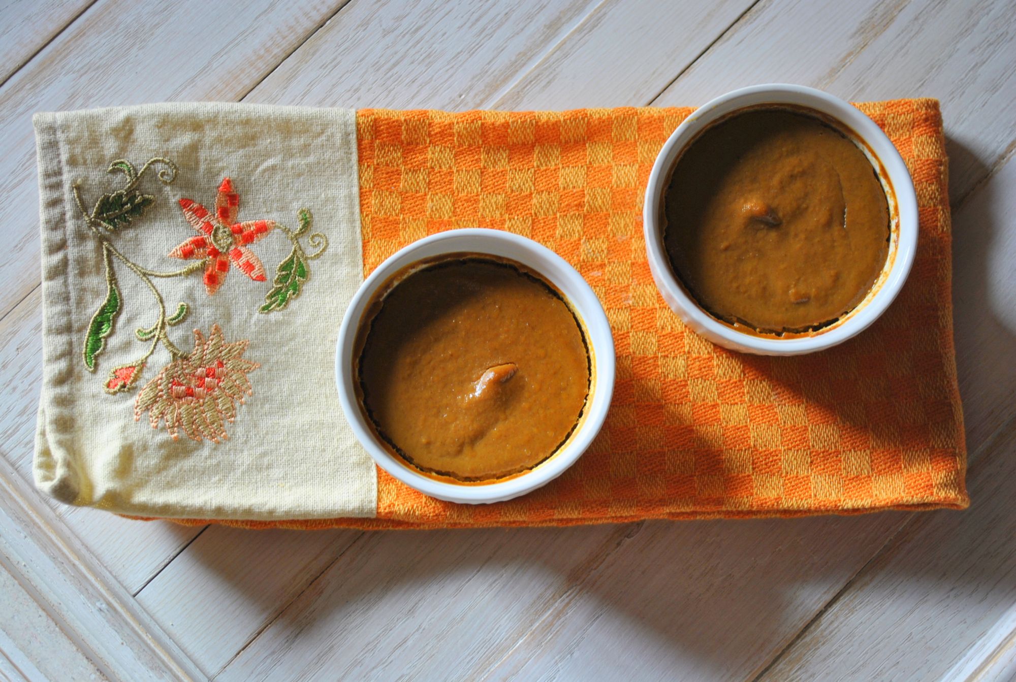 Preheat oven to 350 degrees. In a bowl, combine all the ingredients and beat until smooth. Pour into 6 ramekins or custard cups. Place ramekins into a 9"x13" baking pan; pour hot water to create a hot bath. Bake at 350 degrees for 30-35 minutes or until set. Serve warm or chilled. Enjoy!