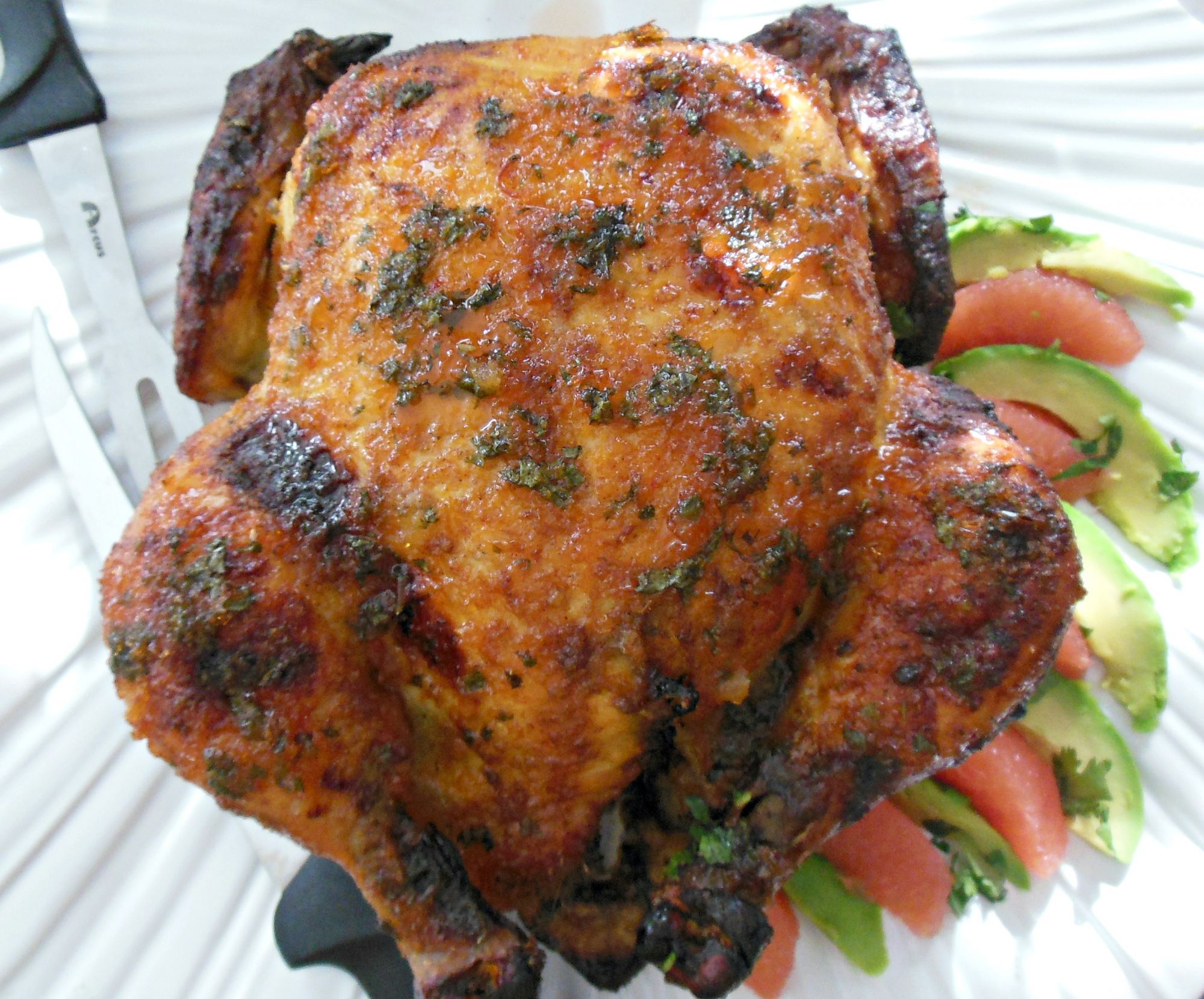 This is simply the best Sweet & Spicy Roasted Chicken EVA! If you like roasted chicken, you are going to fall in love with my Mexican inspired roasted chicken that has been brined overnight in sweet ruby red grapefruit juice and topped with an incredible grapefruit glaze. Perfest for any holiday