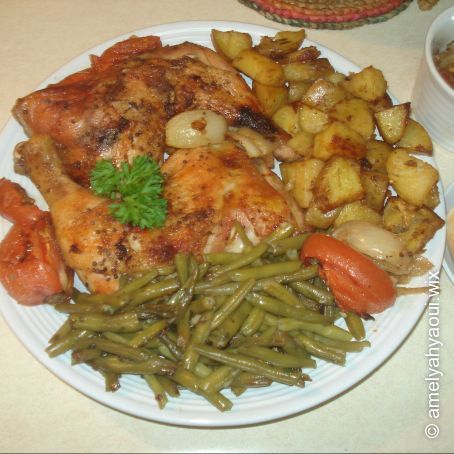 Rosted Garlic chicken breasts witn potatoes and green beans